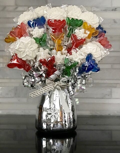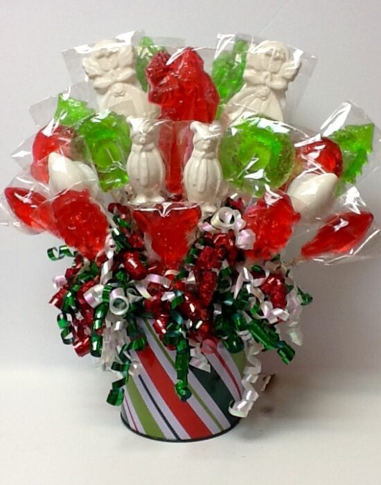 Our hard candy lollipops are available in many flavours, regular or custom colours and can be molded into special shapes, in any quantity. They are then packaged individually, or in bouquets, seasonal gift wrap or special occasion containers at your request.